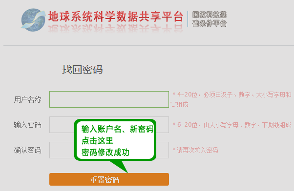 输入招账户名、新密码,点击【重置密码】,密码修改成功。