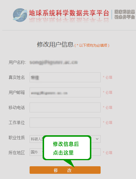 进入修改页面,修改信息后,点击【修改】按钮进行保存