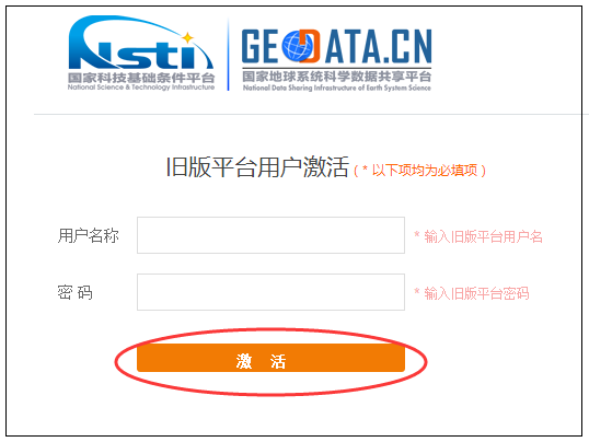 输入旧版平台用户名和密码。点击【激 活】按钮